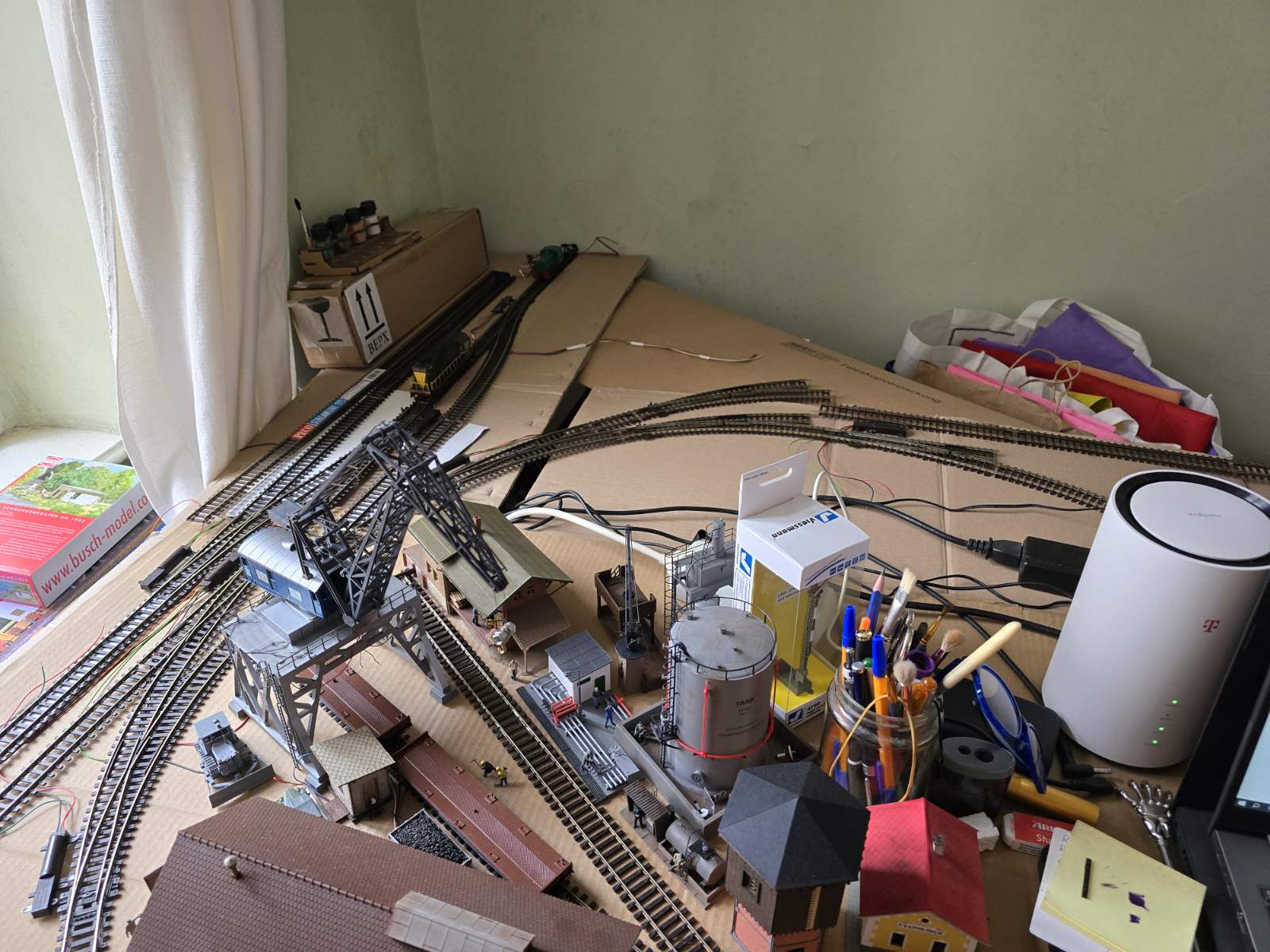 Так, коли мало місця я добудовував ще собі стола для продовження макету. Тож ідея із підвіконням насправді хороша, єдине у Київі коли так хотів зробити мої родичі зауважили що на підвіконні збирається все сміття атмосфери міста, тож для більш сохранності краще уже будувати на полу… Ну а на полу самі розумієте що не краще, тому що там ще більше пилу… З другої сторони, пули не буде якщо часто прибирати…