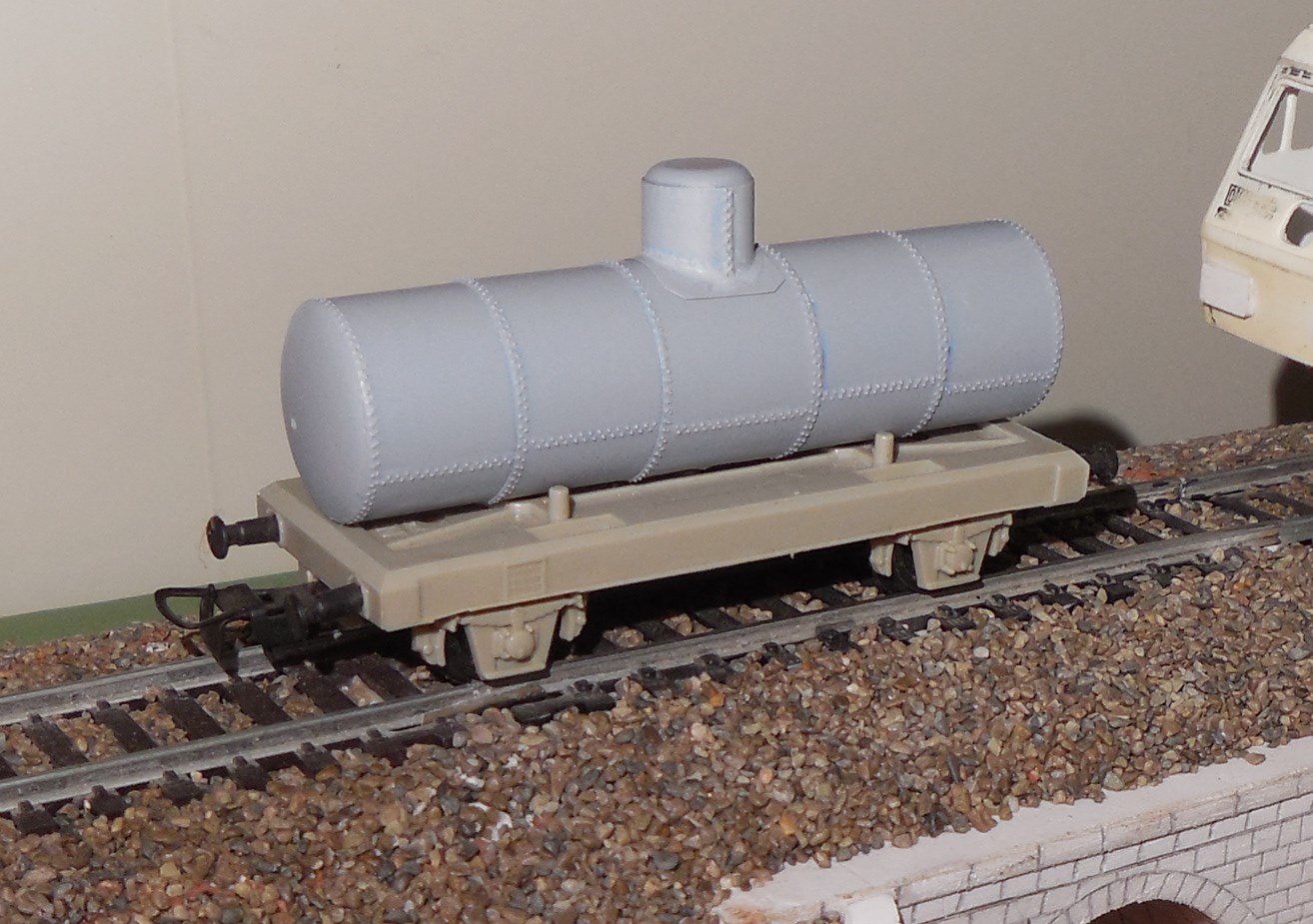 Бак делал так - трубка пластиковая, по торцам 2мм куски наклеил обточил скруглил\шпаклевал, потом 5 барабанов наклеил внахлест , перед этим натыкав двойные шахматно "клепки", загрунтовал.
