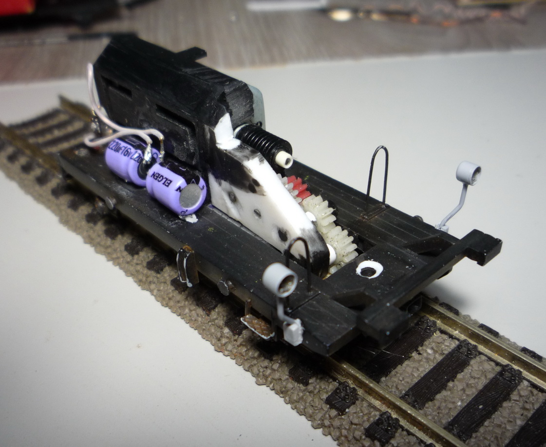 При ходовых испытаниях выявился недостаток токосъёма с одной оси, пришлось сделать и с другой стальной пружинкой.