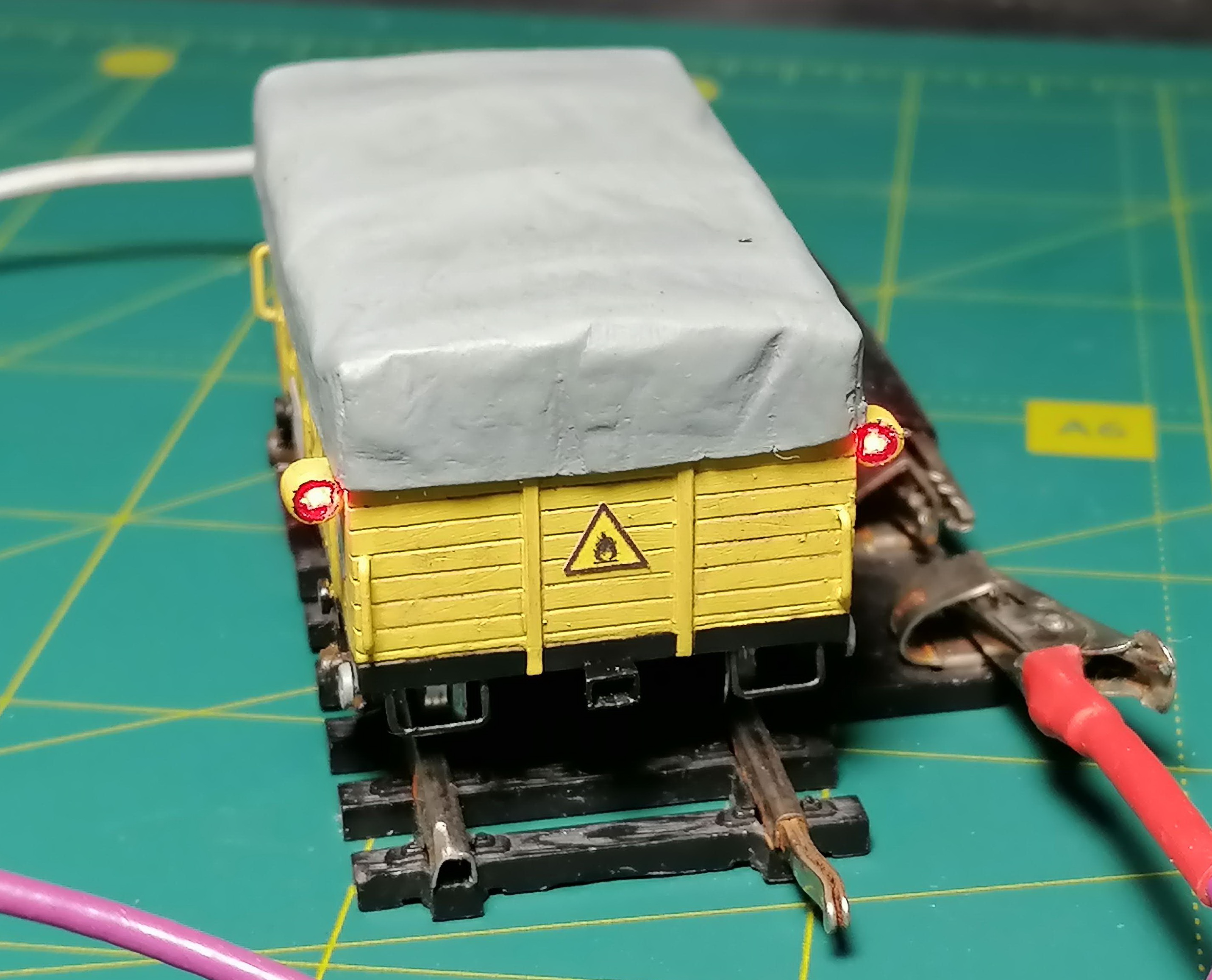 На фото обычно Klv52 используется в сцепе с вагончиком Kla 02. Долго стояла заготовка в виде корпуса без колес, тента и подножек на полке, пока не дошли до неё руки. Или муза прилетела. В общем, доделал его. Почему то не сохранилось старых фото заготовки. Ну да ладно.