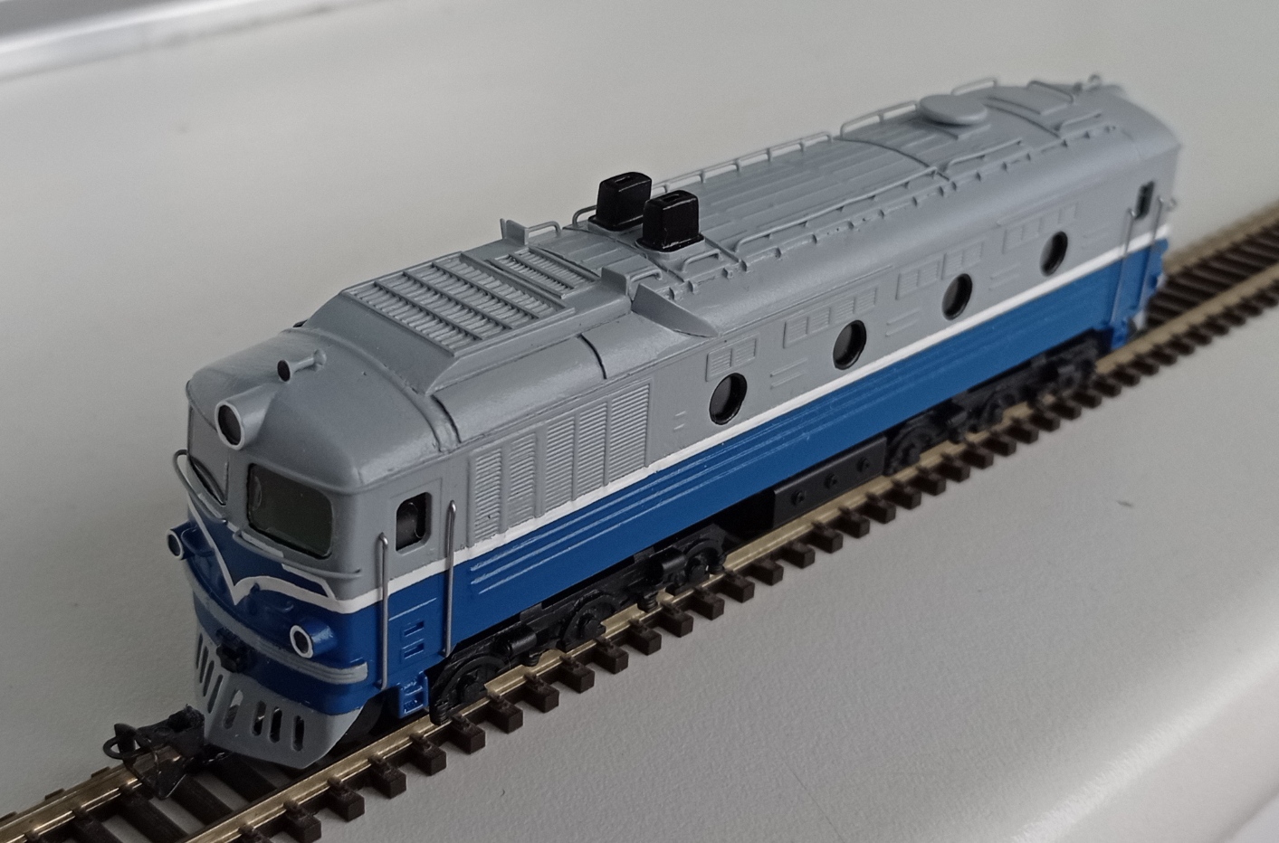 Про крышу я думал, но, во-первых, у меня слишком темный оттенок серого (было бы не очень), а во-вторых, захотелось оригинальный тепловоз без стыка цветов на границе с крышей, как у всех остальных.