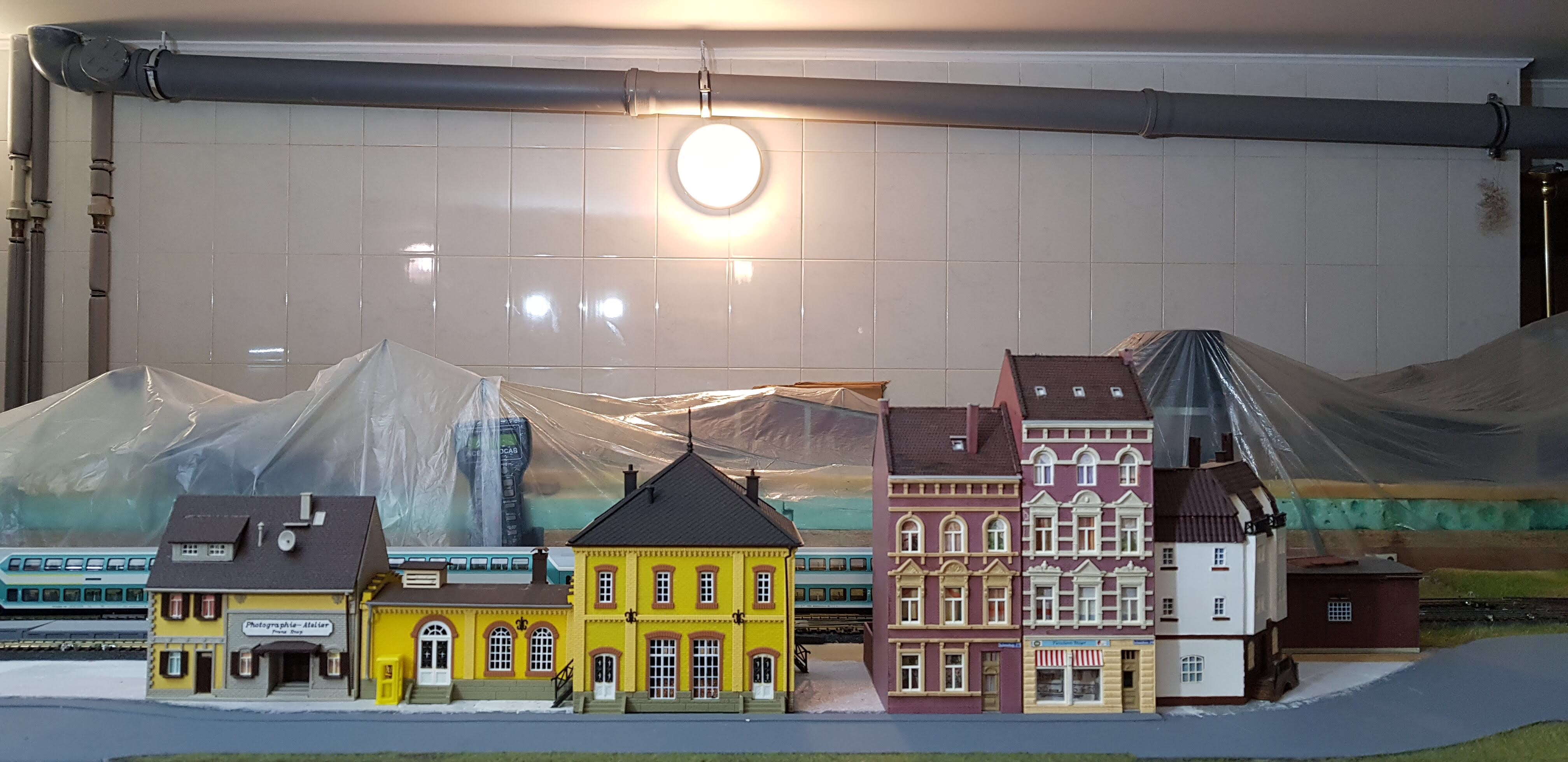 Думаю может ангар локомотива перенести на другую сторону модулей, а пакгауз совместить с рампой, и тогда под кран отдать путь ангара.