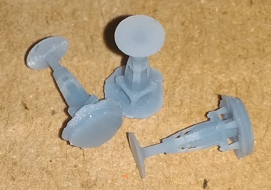 Буферы для грузовых вагонов Пико. Ломаются часто, в вытачивать вручную уже надоело. Правые (с выпуклой тарелкой) и левые (с плоской).