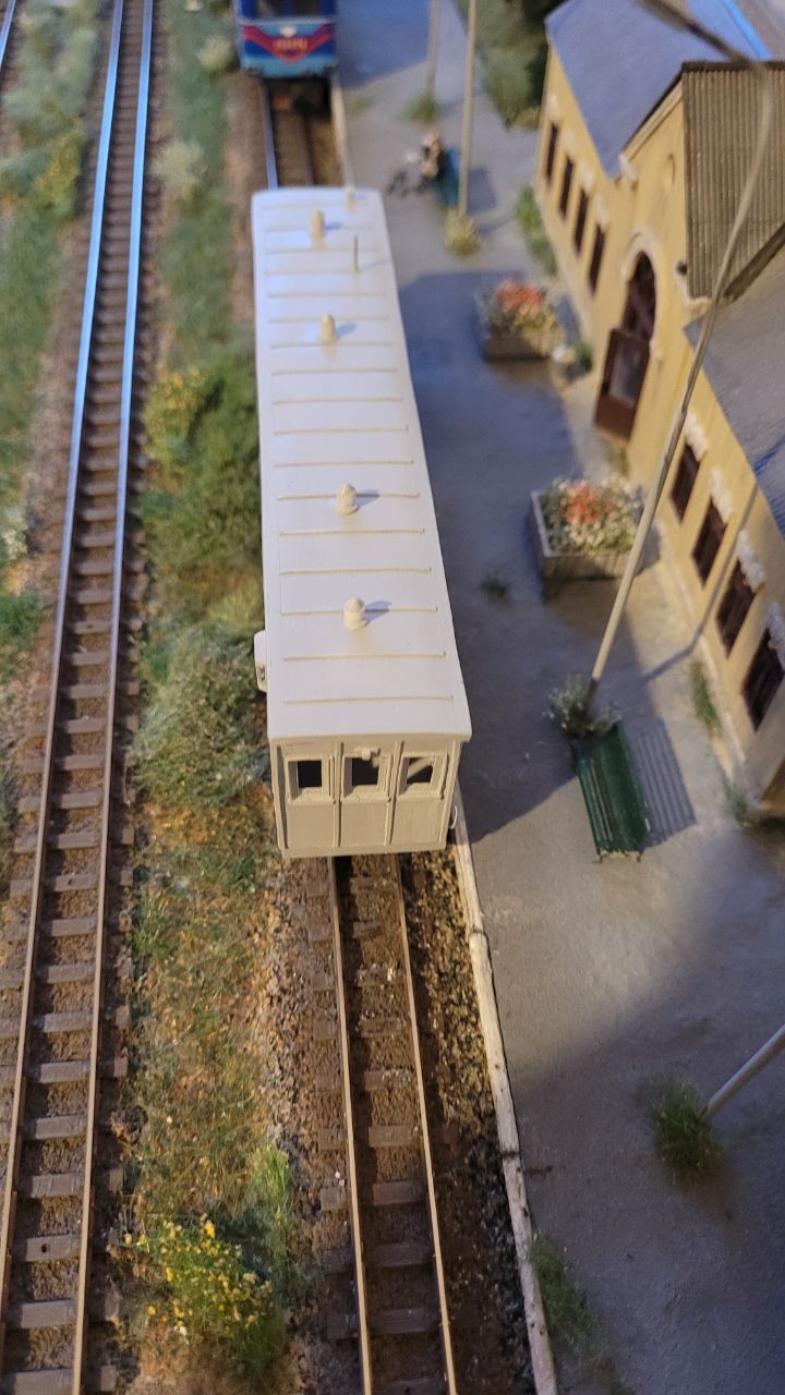 Вагон сделан полностью вручную из пластика. Из покупных деталей - только колёсные пары и винтики, на которых держатся тележки.