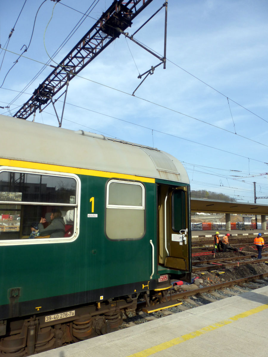 Следующие три фотографии сняты из окна вагона типа Y/B70 жарким летним вечером, когда из-за грозы упало очередное дерево, в которое влетел сходу поезд и, понятно, движение поездов было парализовано на несколько часов. Конечно, все знают, но на всякий случай напомню. Последний кадр не нужно пытаться повторить: вагон движется со скоростью 140 км/ч, а встречная электричка - 120, и она уже видна по центру кадра. По счастью, вагоны с допуском 160 км/ч и выше имеют стандарт UIC-Z, который требует возможности обеспечения герметичности вагона, соответственно, вакуумные туалеты и неоткрывающиеся окна с обязательным кондиционированием также не дадут высунуться и проверить габарит приближения строений собственной персоной.
