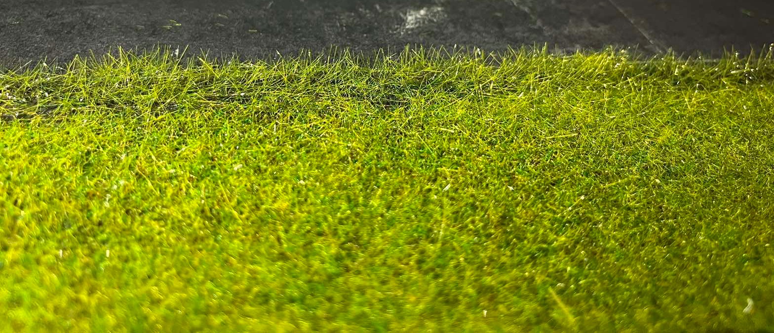 . Да, чуть не забыл. Будьте осторожны с клеем ПВА. Мне попался такой, который при высыхании остался белым и начал очень хорошо просвечивать под флоком. Был отправлен на другие цели и заменён клеем Дракон. Ещё заметил, что чем гуще сыпать флок, тем менее видно его вертикальность. Часть ворсинок падает на уже стоящие ворсинки, путается в них и лежит под разными углами. Ещё на основе разного цвета ковер смотрится по разному. На черной земле даже "весенний луг" темнее, а на темно-желтом темный флок как бы светлеет.