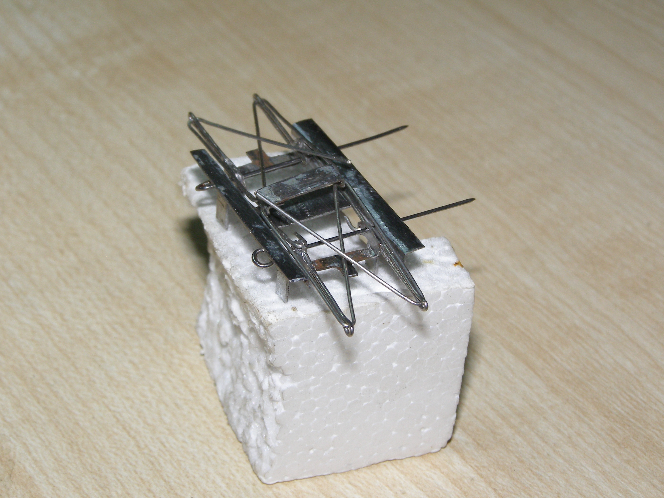 Еще начал делать пантографы. Выгнул из корпуса СD-рома такие заготовки - это будующие рамы пантографов, куда будут крепиться токосъемы. На этом остановился и наступил отдых.