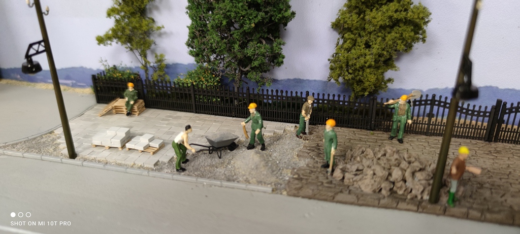 К Новому году стараюсь закончить отдельные этапы строительства макета. Вот окончательно установил 5 домиков под стенкой вдоль улицы в Старом городе. Эти домики - мои первые модели строений, я их собирал более 50 лет тому назад! Поэтому состаривать их особо не пришлось - они и так старые... :D