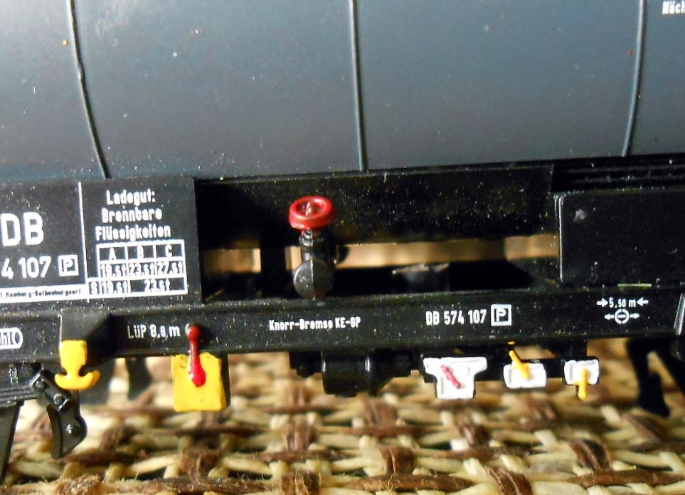 Сегодня подкрашивал тормозные рукоятки и маневровые крюки вагонам. Они в жизни встречаются крашенные и нет.Мне больше нравится крашеные.