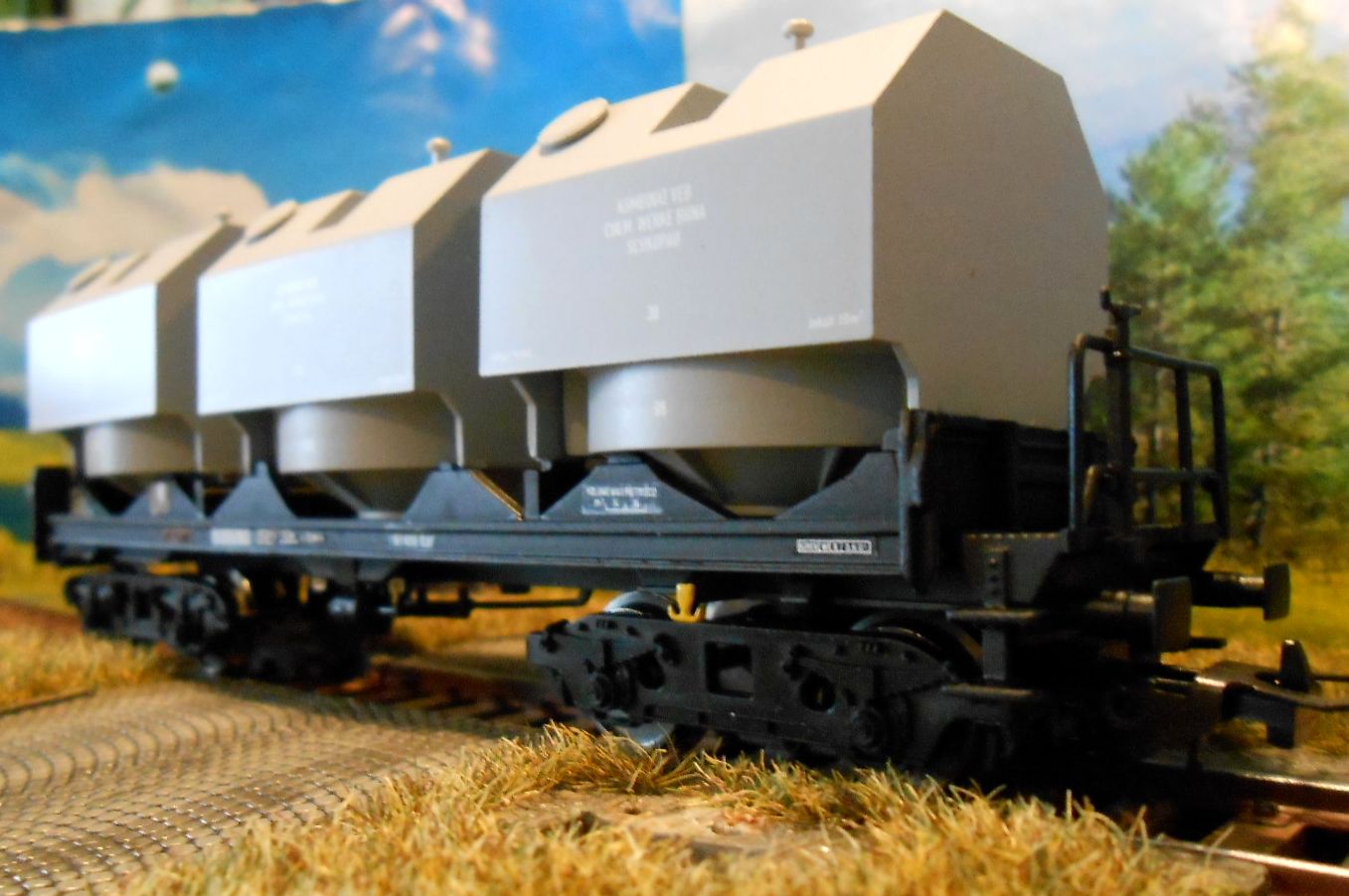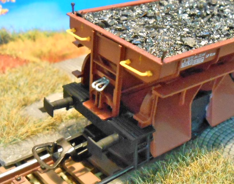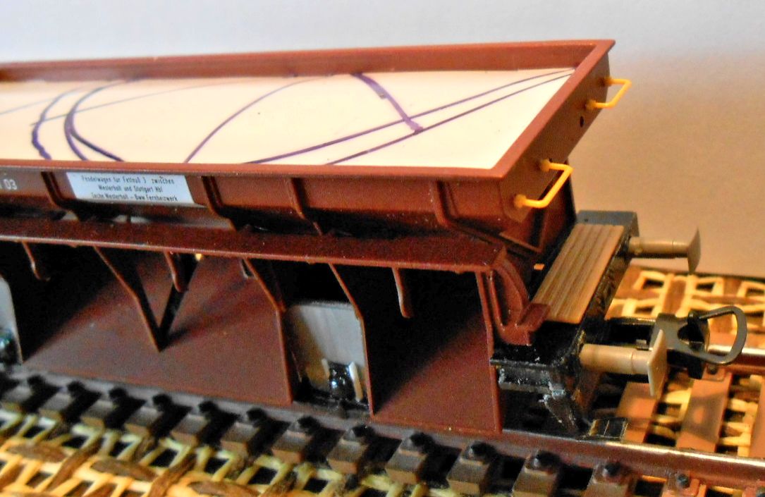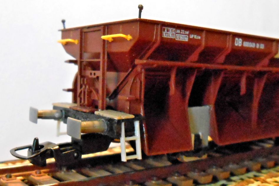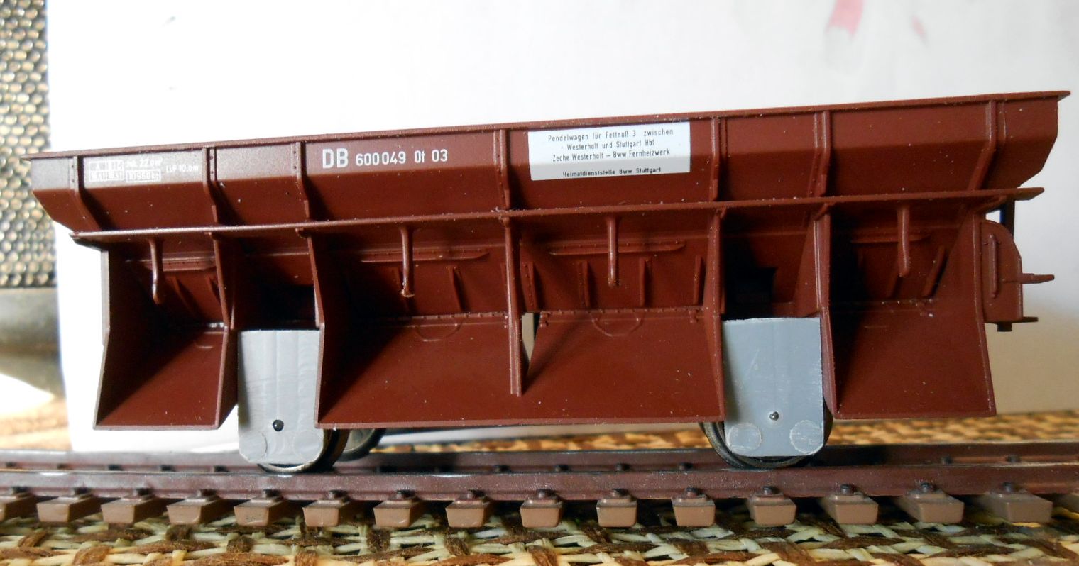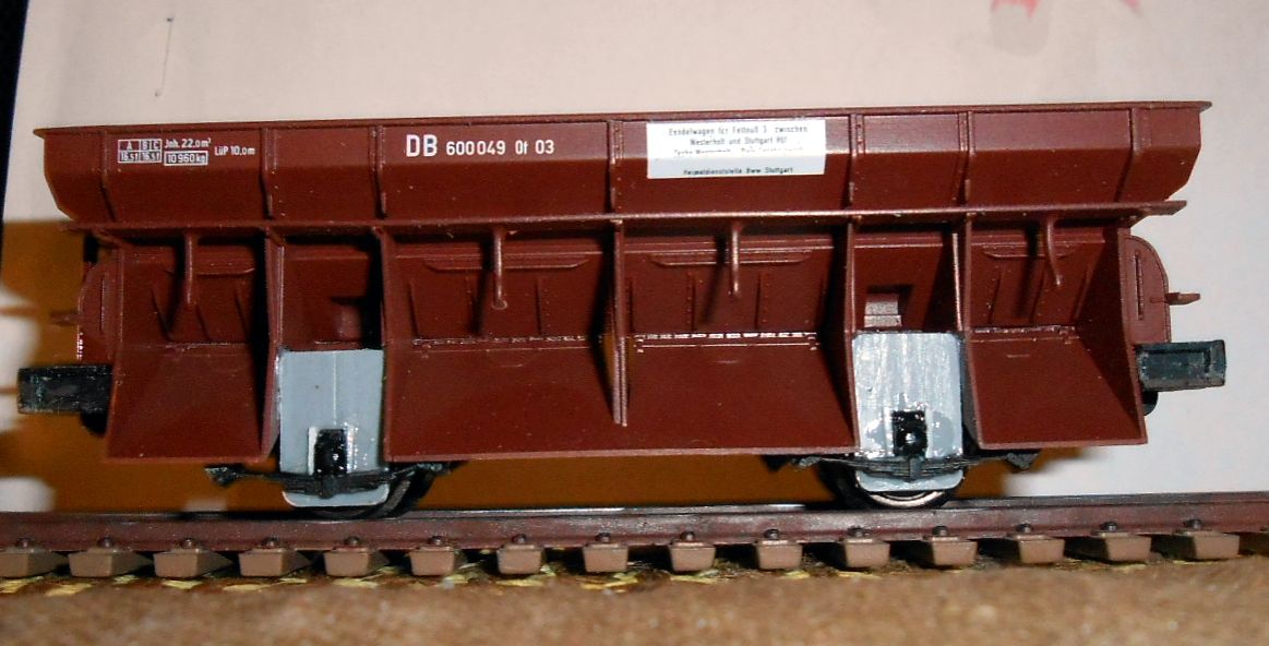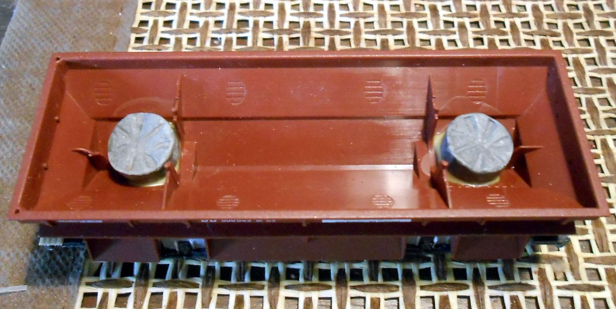 вариант этого вагона.На фото выше он слева. Зарезал раму вагона. Бункера дополнительно догружаю свинцом,предварительно обвернув их