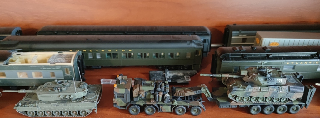 В итоге до войны основные мои усилия были направлены на макет, а остальное - по остаточному принципу. Но в 2022 году все поменялось. Постройка макета была вынужденно приостановлена, но поскольку руки чесались что-то делать, начал более-менее активно собирать разные дополнения к макету. Доклеил все запланированные домики и переключился на танки, автомобили и т.д.