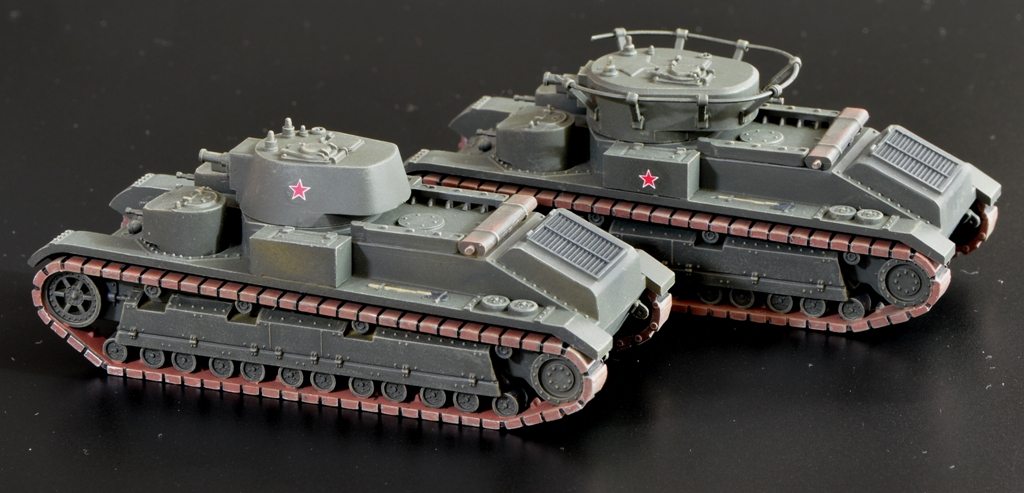 Вчера закончил сборку и покраску купленных в Испании Т-28 и Т-35. Итого получилось два Т-35 и три Т-28 разных модификаций: