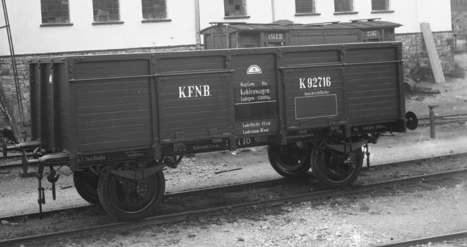 Первая - Австро-Венгрия к моменту постройки вагона только с десяток лет как перешла на метрическую шкалу, и много где производство не было еще перестроено, впрочем, и привычки у людей к футам и дюймам сохранялись долго). Вторая оказалась еще занятнее. Данный вагон является вариантом английского угольного вагона, которые с различными усовершенствованиями просуществовали с середины XIX по вторую половину ХХ века. Помимо чисто внешнего сходства, вагон совпадает по размерам с вагоном английского габарита, и, соответственно, уже, чем стандартные немецкие при абсолютно такой же высоте (габарит в материковой Европе был увеличен в сторону повышения высоты уже в ХХ веке). Помните то фото выше с короткими вагончиками?..
