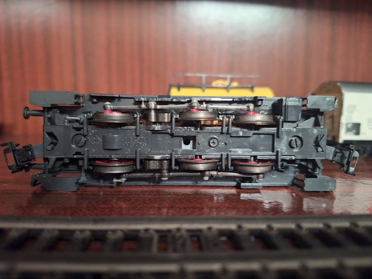 Доброго вечора, панове. Маю v60 від Roco, дуже побитий, але сучасна модель, з маховиком, NEM шахти, динамічні зчіпки. Привід на одну колпару з бандажами. З мінусів - жахливий стан поручнів та підніжок. Замовляти запчастини не вмію і не планую, а вони ніби з капрону і клей їх не бере.